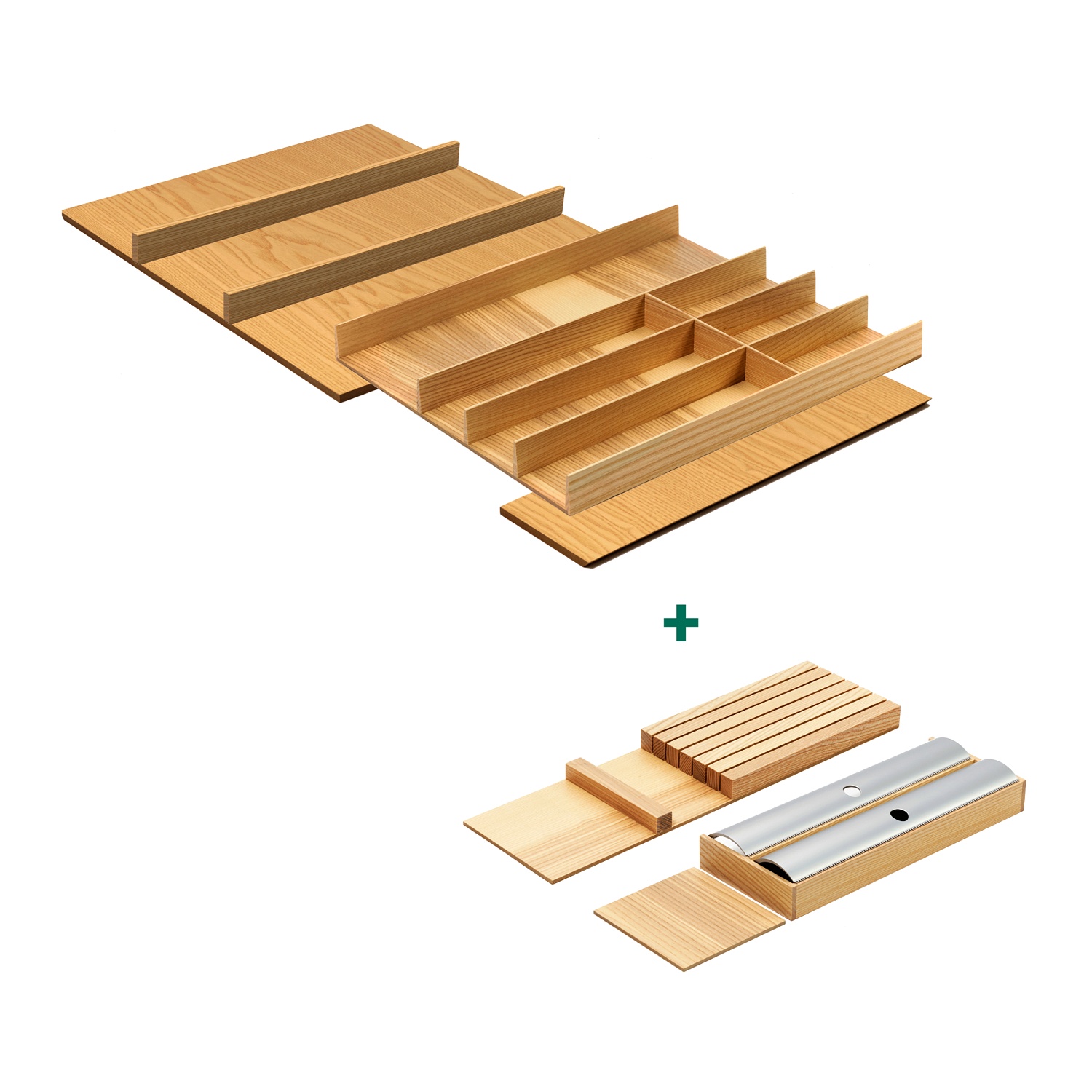 —КОМПЛЕКТ лоток + держатели для фольги и для ножей, ФайнЛайн Линик 800-900 мм, глубина 500 мм, цвет ДУБ натуральный Kessebohmer