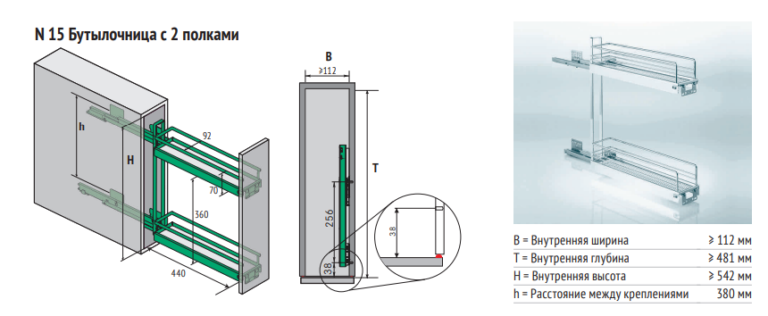 Бутылочница 150 мм 3D с 2 полками Арена СТИЛЬ цвет АНТРАЦИТ Kessebohmer | официальный магазин