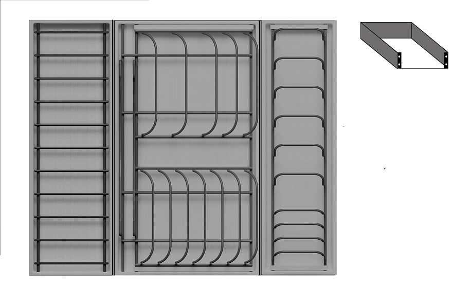 1 для посуды большой (423 x 248 мм, стоит из 1 х держатель металлический, 1 х поддон пластиковый, 2 х защелка-ограничитель)