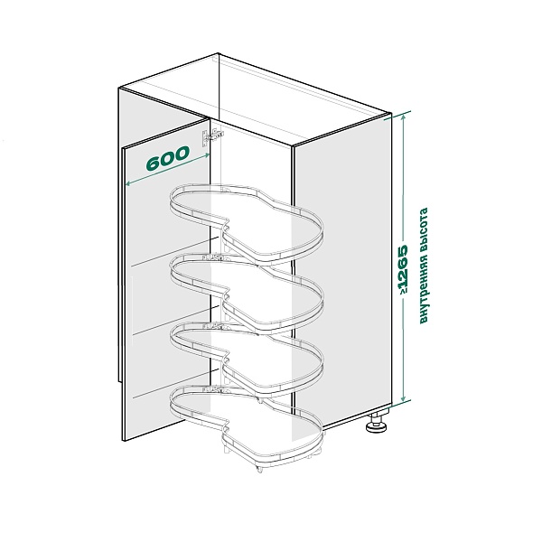 КОМПЛЕКТ правый, Леманс 600 мм, H 1265, Арена ПЬЮР, 4 полки, 4 доводчика, цвет АНТРАЦИТ, цвет дна Антрацит