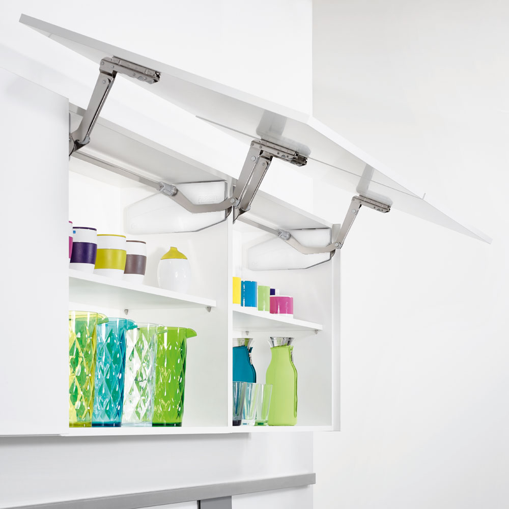 Подъемный механизм для кухни: диагональный подъем FREEswing от Kessebohmer для тяжелых фасадов до 17 кг