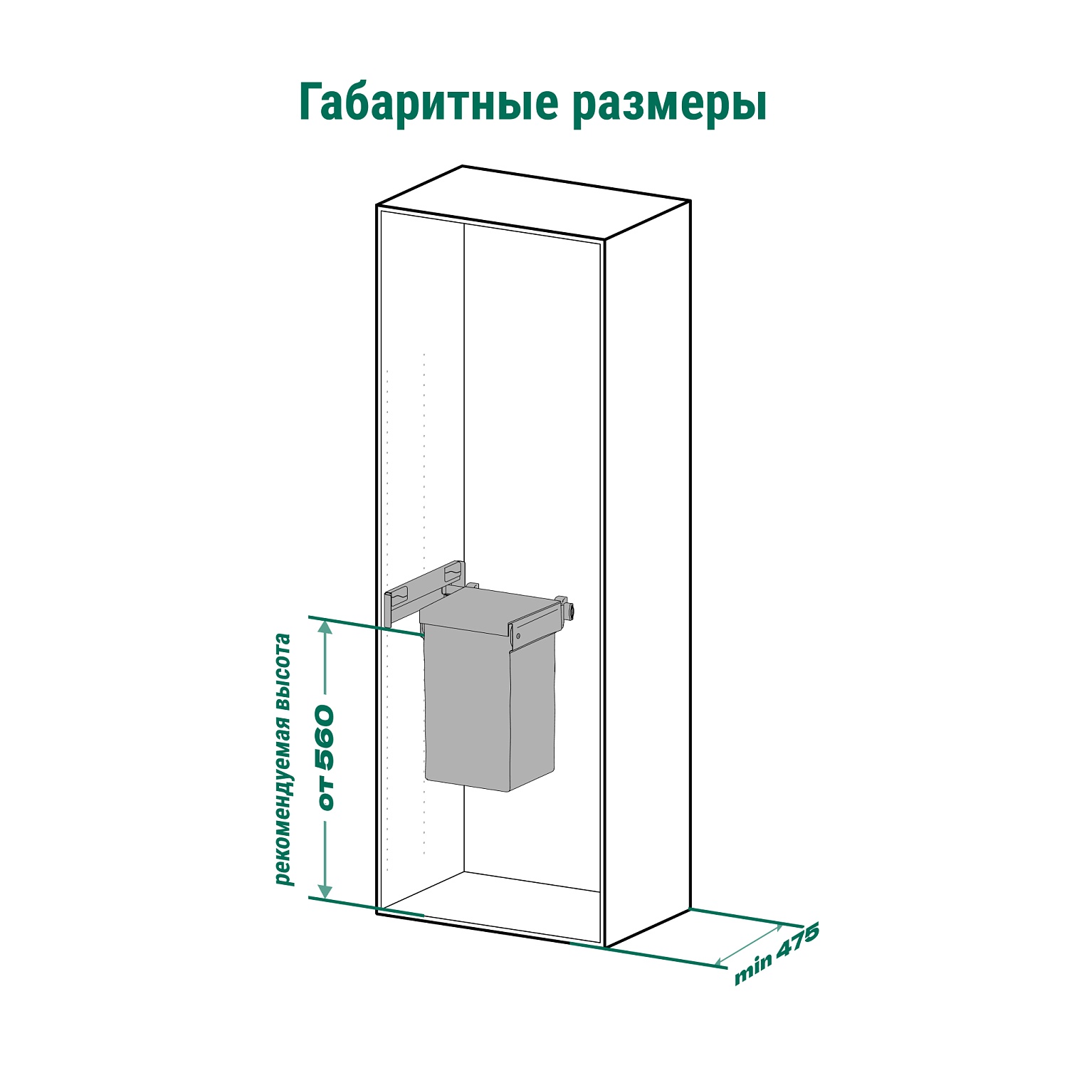 Комплект односторонний выдвижной с широким мешком для белья Конеро W 457 мм D 475 мм1 мешок  2 вешалки-держателя цвет комплекта ШАМПАНЬ Kessebohmer | официальный магазин