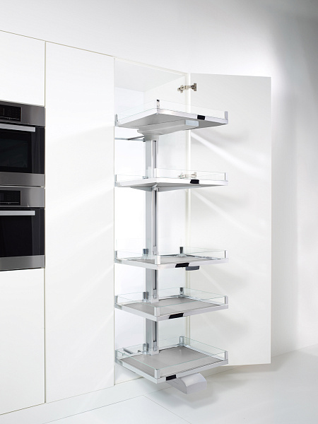 Комплект полок 5шт + 1 ручка, со стеклянными боковинами, Конвой Лавидо 600 мм, Арена ВАРИО, цвет ХРОМ, цвет дна Серый, антислип (2804590005)