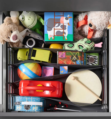 В детской. Приучать ребенка к порядку приятно с помощью SpaceFlexx. Мягкие игрушки, тематические наборы, книжки, кубики и конструкторы, принадлежности для лепки и рисования – свое место будет у каждого предмета.